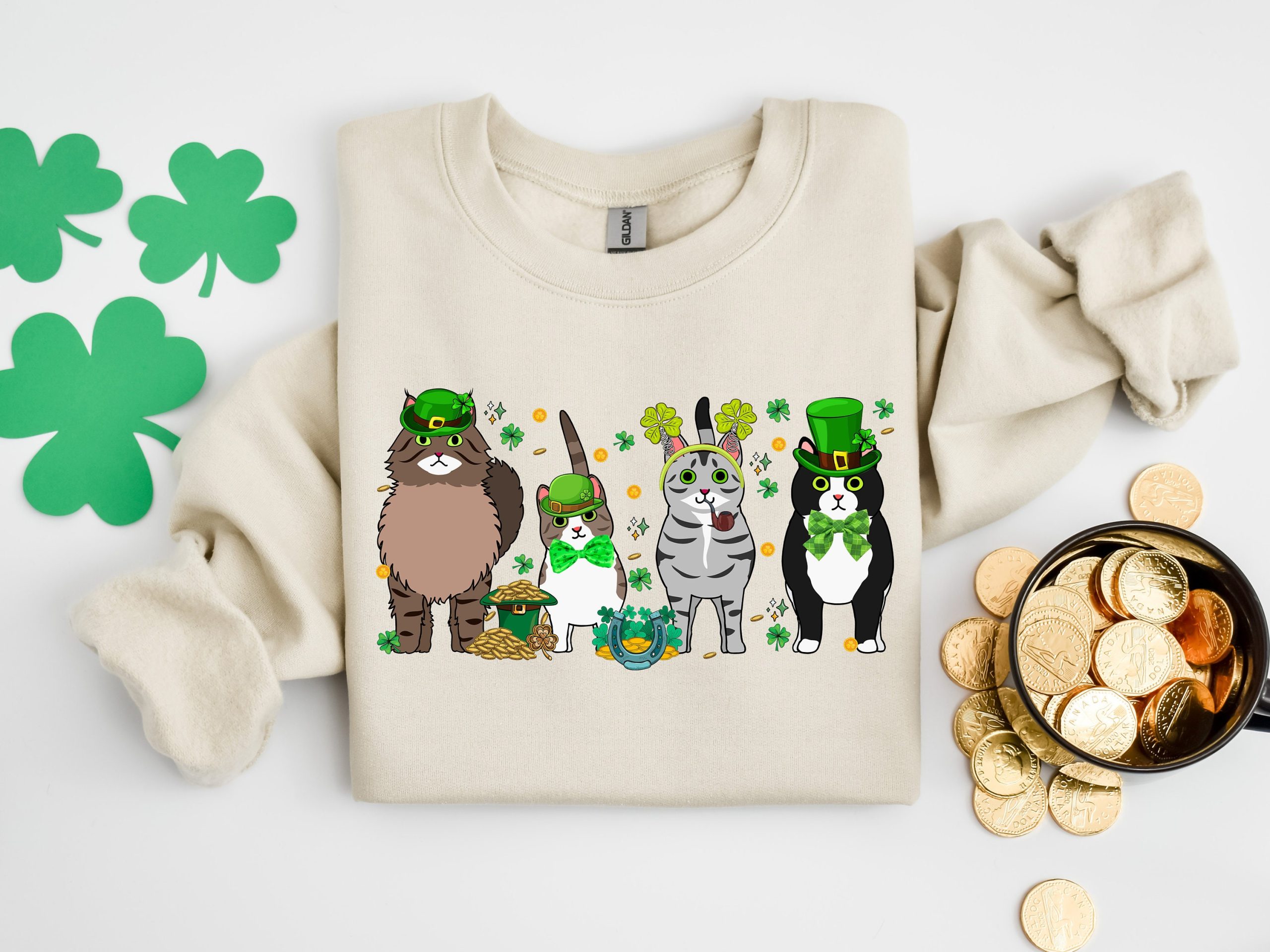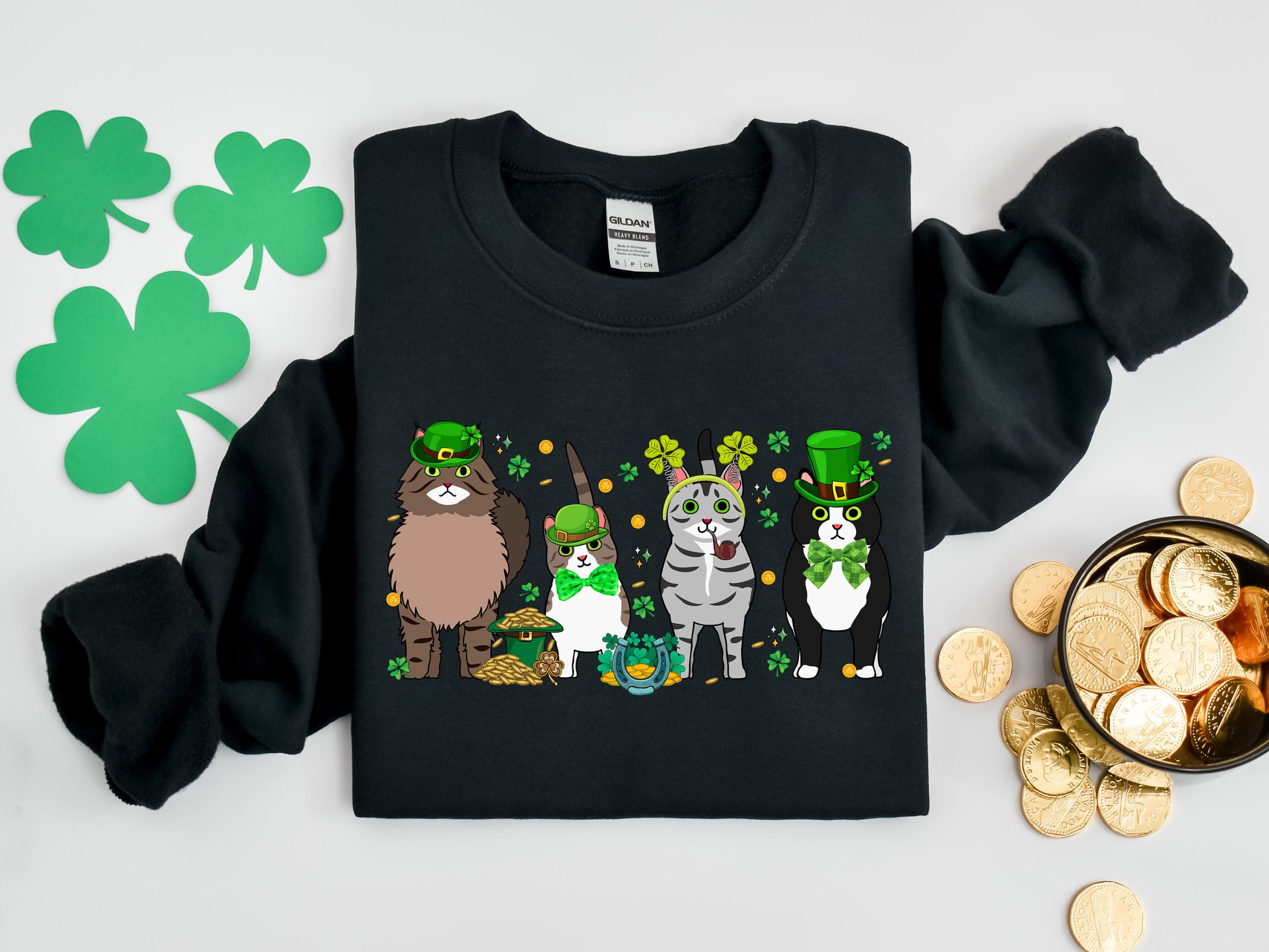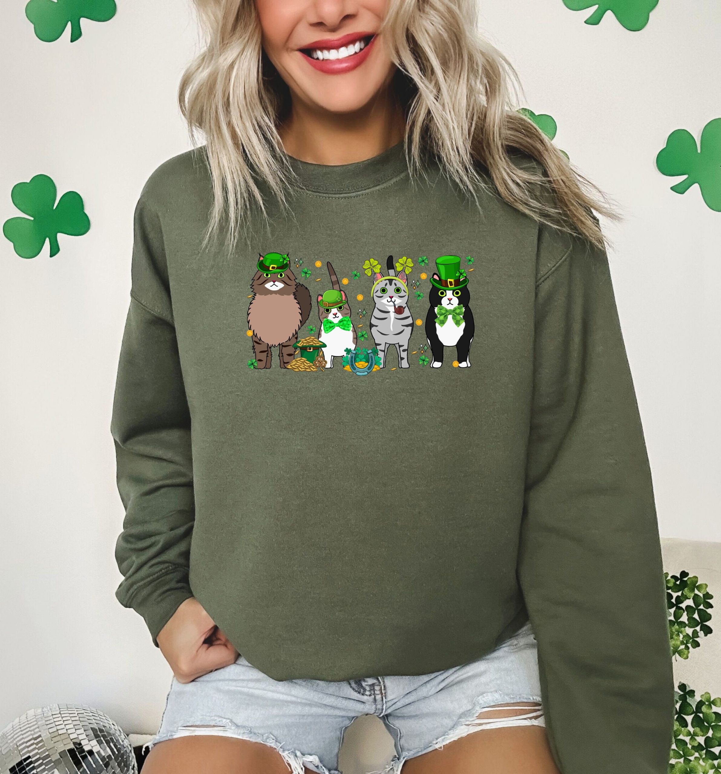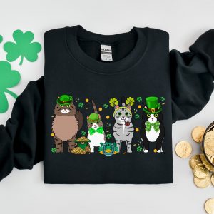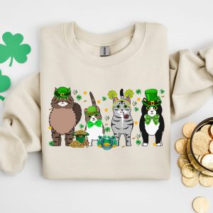 Irish Lucky Cats Sweatshirt, St Paddys Day Cat Lover Shirt, Lucky Irish Sweater, Cat Shamrocks T-Shirt, Irish Cat Mom T-Shirt