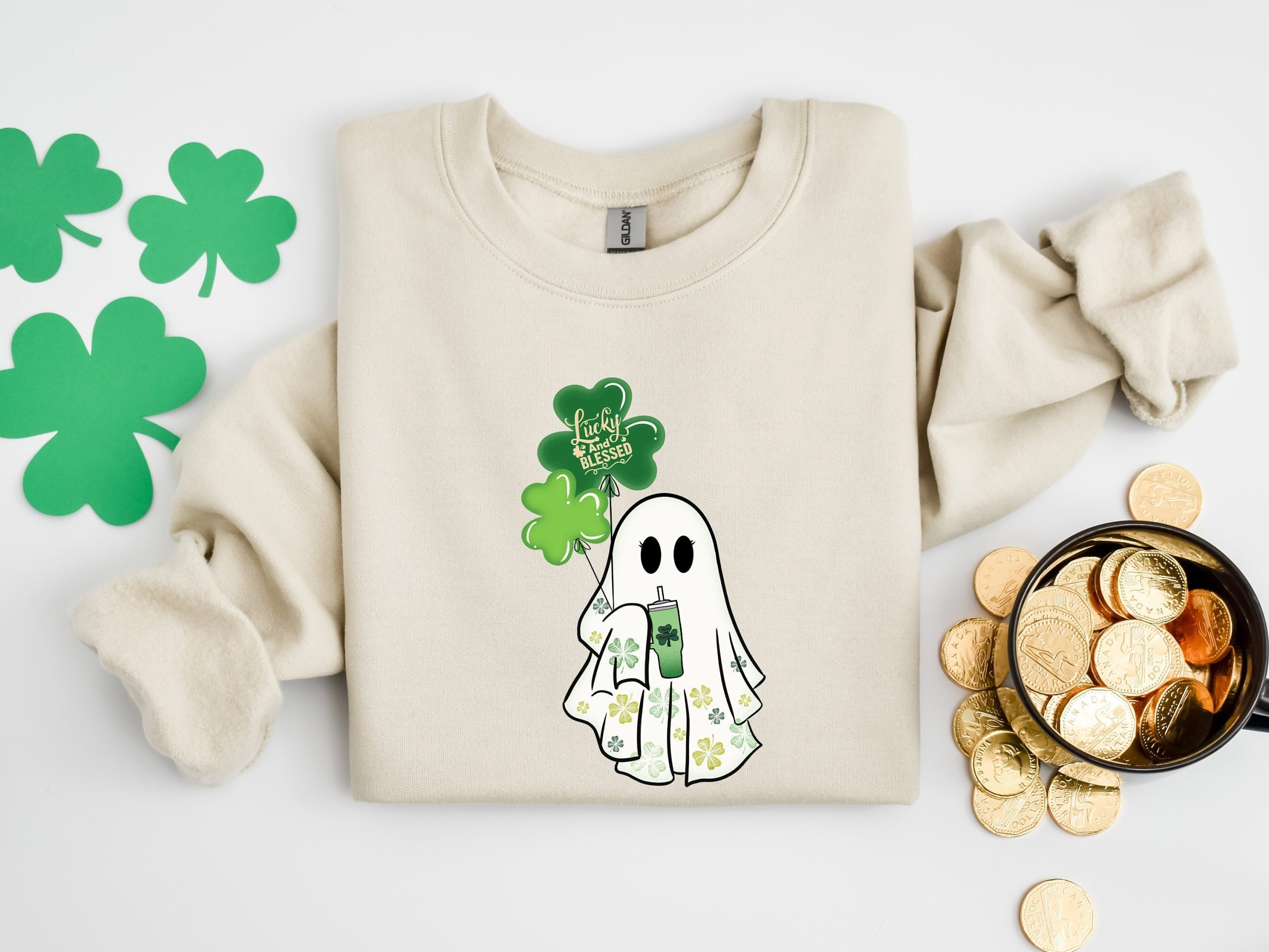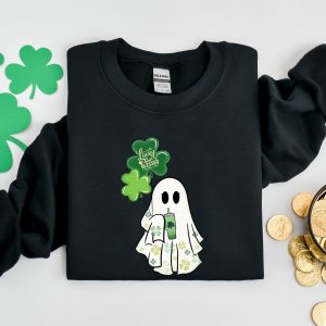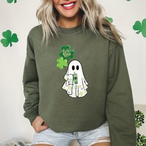 Lucky And Blessed Ghost Sweatshirt, St Patricks Day Shirt, Lucky Boo Shirt, Irish Spirit Tshirt, Clover Ghost Spooky Shirt, Clover Tee