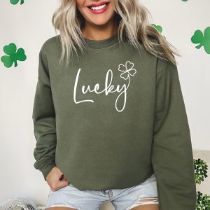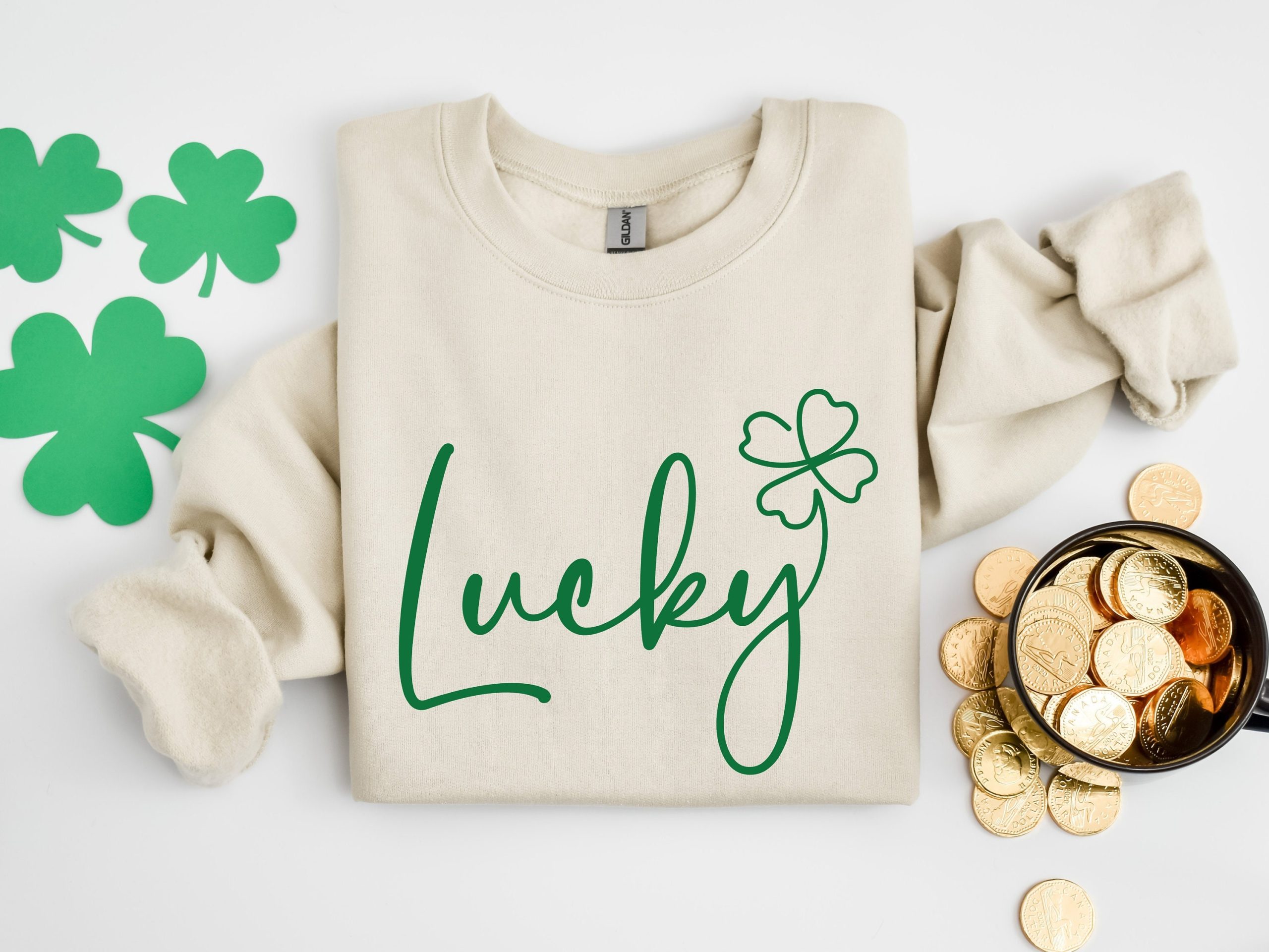 Lucky Sweatshirt, St Patricks Day Shirt, Lucky Crewneck Sweater, Shamrock Tee, Saint Patricks Day Gift, Irish Tshirt, Four Leaf Clover Shirt