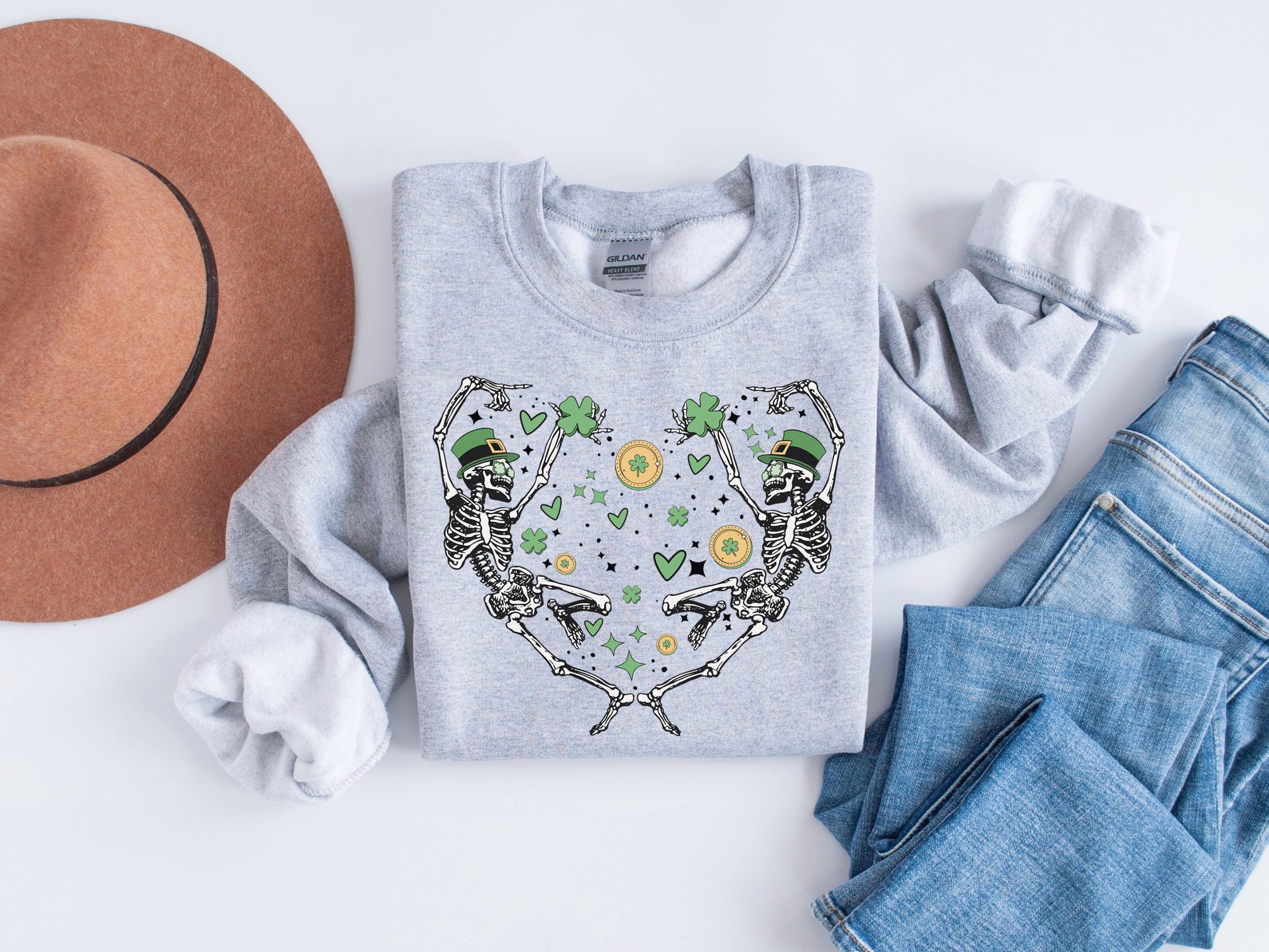 St Patricks Day Skeleton Sweatshirt, Dancing Skeletons Shirt, Irish Sweater, St Paddys Day Shirt, Slainte Sweatshirt, Shamrock Shirt, Lucky